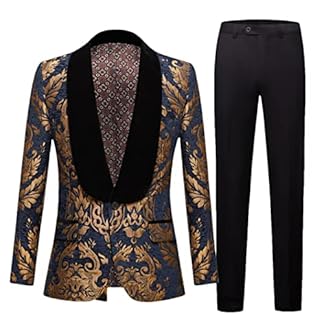 514,08 €Produkt kaufenProm Herren Jacquard Anzüge Blau Schal Revers Bräutigam Smoking Kostüm Blazer Weste mit Hose Blau Mantel und Hose 40R (M)