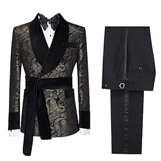 261,95 €Produkt kaufenYoullyuu Herren Paisley Smoking Anzug Zweireihiger Schal Velours Revers Blazer Jacke mit Gürtel Hosen Sets