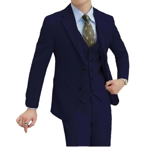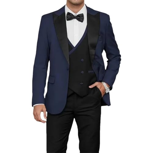 3-teiliger formeller Anzug für Herren, Smoking, Hochzeitskleider, Abschlussball, Blazer, Weste, Hose, Anzug-Set, Marineblau, 3 Stück, XXL