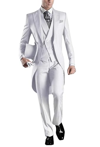 3-teiliges Set für Herren, formelles Revers, Ein-Knopf-Anzug, Abschlussball, Smoking, Hochzeit, Blazer, Weste, Hose, Blau 3pcs, L