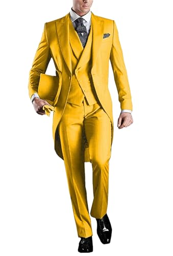 3-teiliges Set für Herren, formelles Revers, Ein-Knopf-Anzug, Abschlussball, Smoking, Hochzeit, Blazer, Weste, Hose, Goldfarben, 3 Stück, L