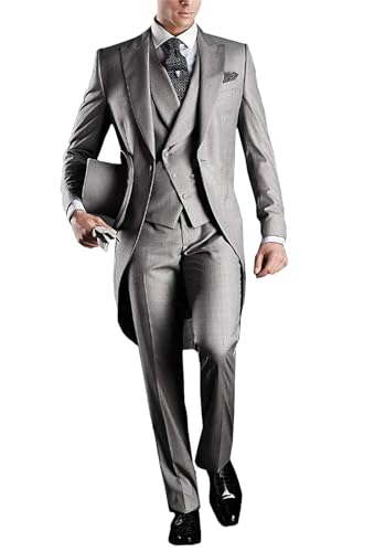 3-teiliges Set für Herren, formelles Revers, Ein-Knopf-Anzug, Abschlussball, Smoking, Hochzeit, Blazer, Weste, Hose, Grau 9, 3 Stück, XXL