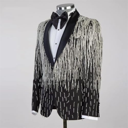 Herren-Smokings, mit Strasssteinen, Quasten, Anzug, spitzes Revers, Hochzeit, Bräutigam, Blazer, Hose, 2-teiliges Set