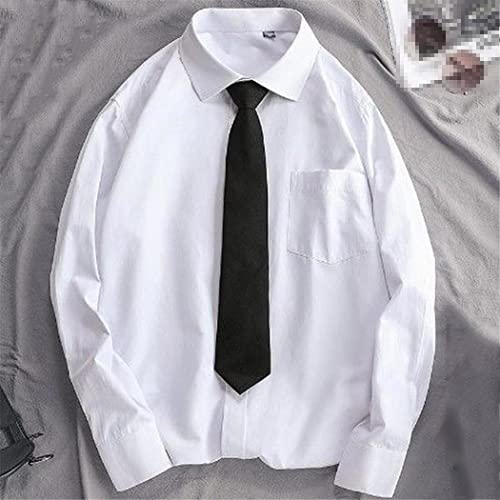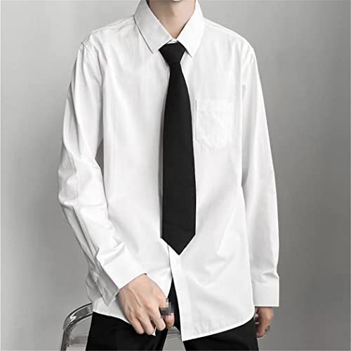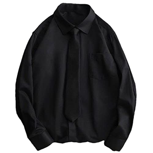 Herren Weiß Hemden mit Krawatte Set Uniform Langarm Blusen Japanische Lose Paar Kleidung, Schwarz mit Krawatte, M
