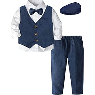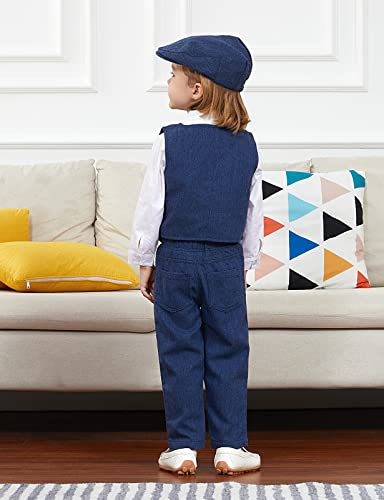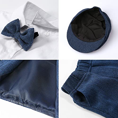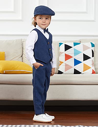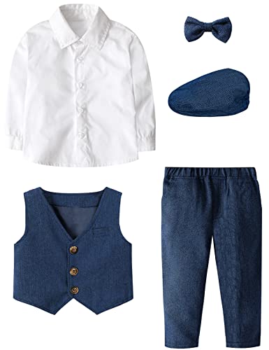 mintgreen Baby Jungen Tweed Anzug Set mit Fischgrätenmuster, 4 Stück Hochzeitsoutfit Hemd + Hose + Weste + Mütze 1-4 Jahre