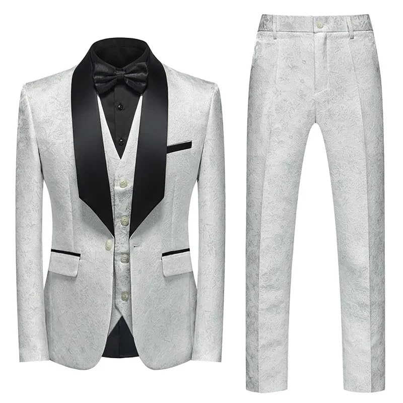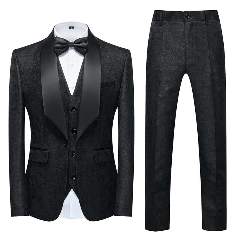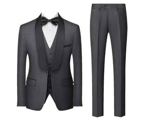 3-teiliger Anzugsblazer für Herren, Slim-Fit-Smoking mit 2 Knöpfen, Jacke, Weste, Hose und Krawatte für Party, Hochzeit und Business