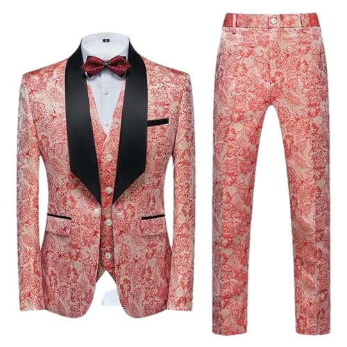 Herren-Anzug mit schmaler Passform, ein Knopf, dreiteilig, Blazer, Kleid, Business, Hochzeit, Party, Jacke, Weste und Hose