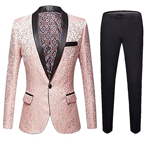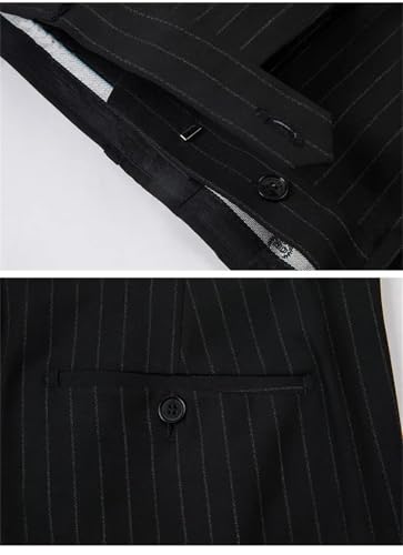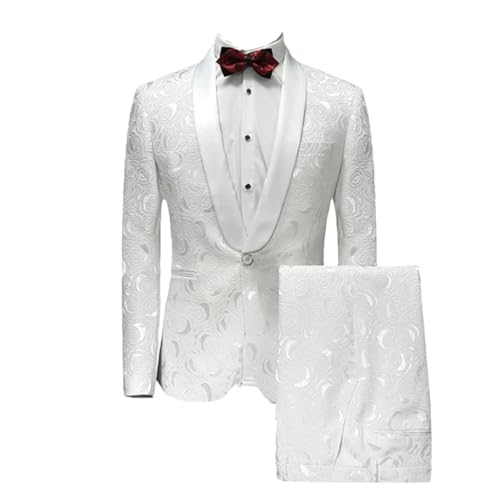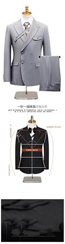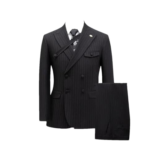 Zweireihiger Herrenanzug, 2-teilig, Revers, flache Passform, lässiger Smoking für Hochzeit (Blazer + Hose), Schwarz , 58